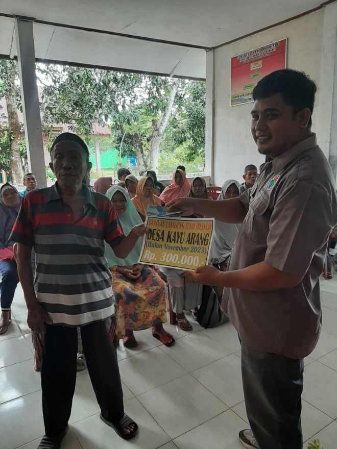 Hal ini merupakan bagian dari upaya Pemerintah Desa Kayu Arang untuk mendukung ketahanan Pangan dan kesejahteraan masyarakat. Kedua diimformasikan bahwa jumlah KPM keluarga penerima manfaat pada Bulan November ini masi tetap seperti bulan-bulan sebelum nya sebanyak 34 kepala keluarga (KK) dengan besaran bantuan sebesar 300 ribu rupuiah perbulan per kepala keluarga. Dengan penyaluran BLT-DD ini diharapkan dapat memberikan dampak positif bagi masyarakat Desa Kayu Arang, bukan hanya dapat membantu dalam memenuhi kebutuhan pokok saja,tetapi dapat juga membangun solidaritas dan kebersamaan di tengah-tengah tantangan ekonomi.Bantuan Langsung Tunai Dana Desa ini merupakan kegiatan pemberian bantuan langsung berupa dana tunai yang bersumber dari Dana Desa tahun anggaran 2023,yang diputuskan melalui musyawara Desa sesuai dengan kriteria yang ditetapkan dalam peraturan perundang-undangan.