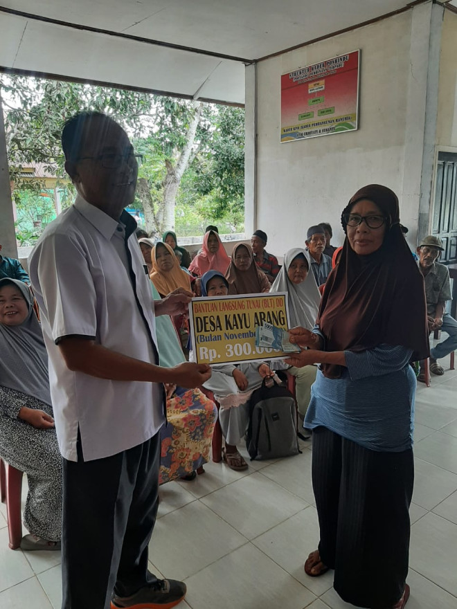 Hal ini merupakan bagian dari upaya Pemerintah Desa Kayu Arang untuk mendukung ketahanan Pangan dan kesejahteraan masyarakat. Kedua diimformasikan bahwa jumlah KPM keluarga penerima manfaat pada Bulan November ini masi tetap seperti bulan-bulan sebelum nya sebanyak 34 kepala keluarga (KK) dengan besaran bantuan sebesar 300 ribu rupuiah perbulan per kepala keluarga. Dengan penyaluran BLT-DD ini diharapkan dapat memberikan dampak positif bagi masyarakat Desa Kayu Arang, bukan hanya dapat membantu dalam memenuhi kebutuhan pokok saja,tetapi dapat juga membangun solidaritas dan kebersamaan di tengah-tengah tantangan ekonomi.Bantuan Langsung Tunai Dana Desa ini merupakan kegiatan pemberian bantuan langsung berupa dana tunai yang bersumber dari Dana Desa tahun anggaran 2023,yang diputuskan melalui musyawara Desa sesuai dengan kriteria yang ditetapkan dalam peraturan perundang-undangan.